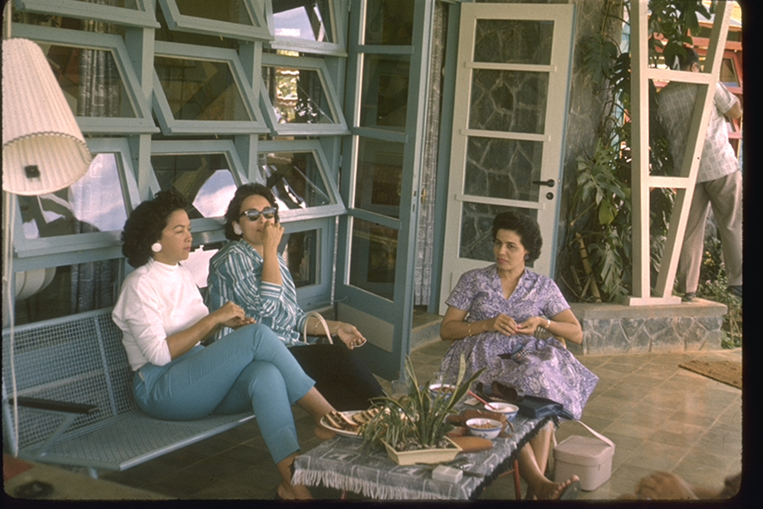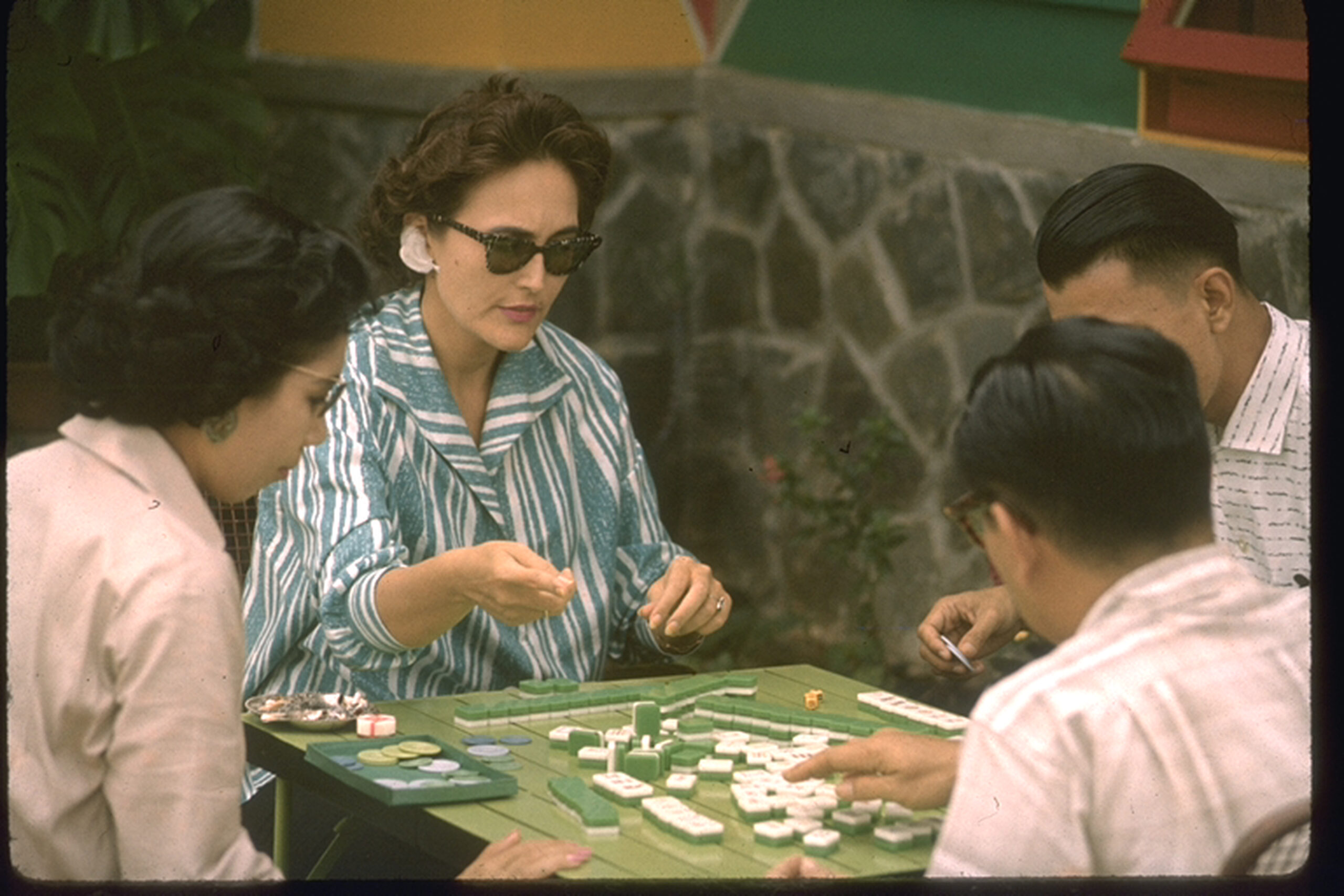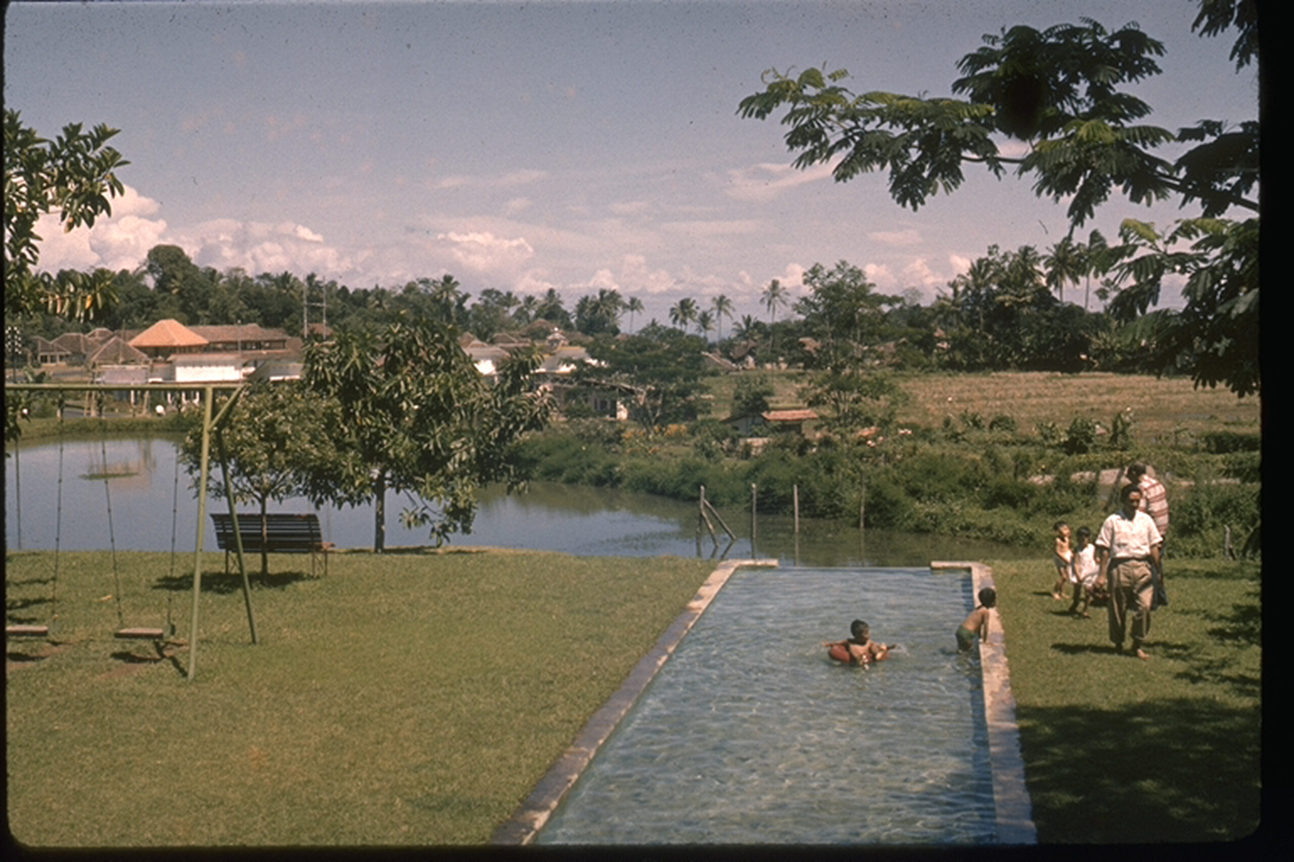 Men, women and children are having a good time. They have a chat, take a drink, have a meal. Some of them are playing a game of mayong. Servants are preparing some dishes. We get a view on a pond and a bassin made suitable for swimming. We also get a glimpse of swimming pool Tjibulan,1 at the base of Mount Puncak. Kids are having a good time. The weather is always nice.