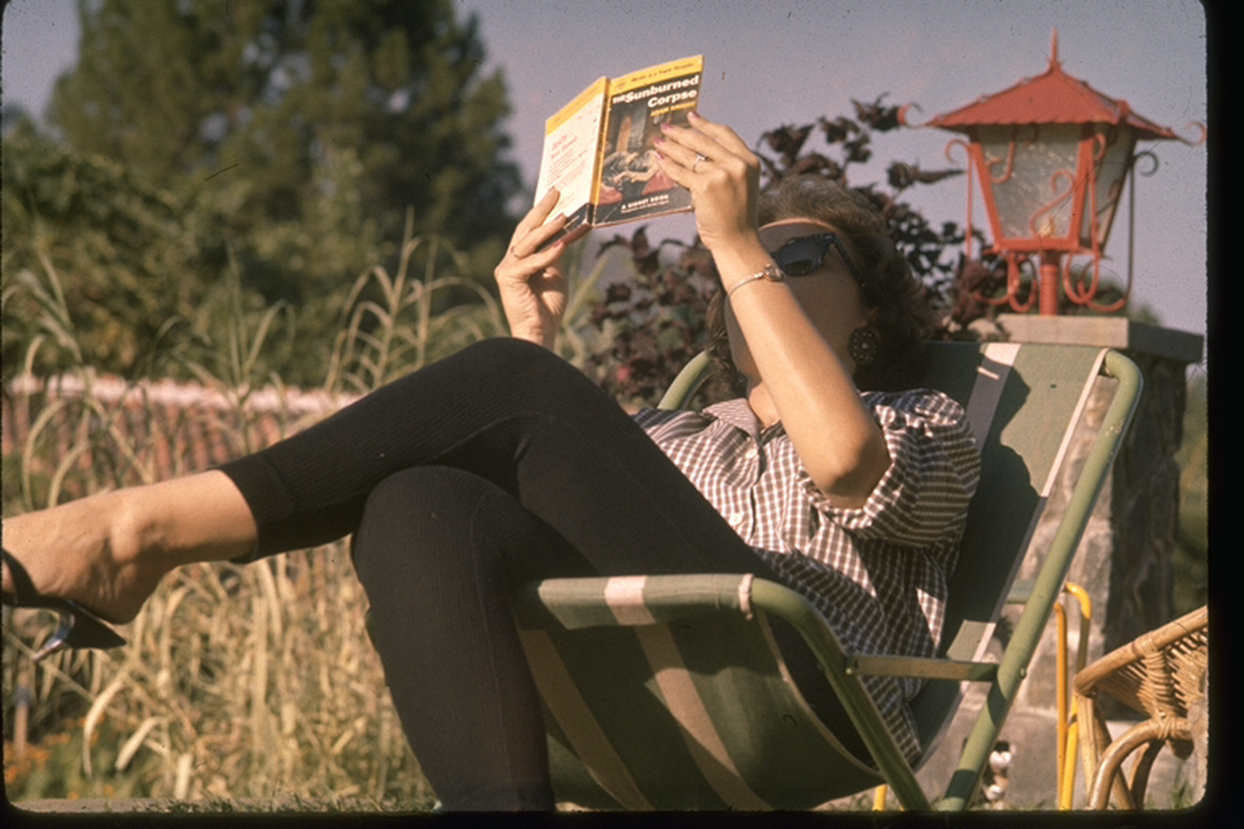 My favorite pic? Nr. 34.3 There is a lady (known to me) sitting in a deck chair who is reading Adam Knight’s ‘The Sunburned Corpse‘ (1954, that’s my birth year).